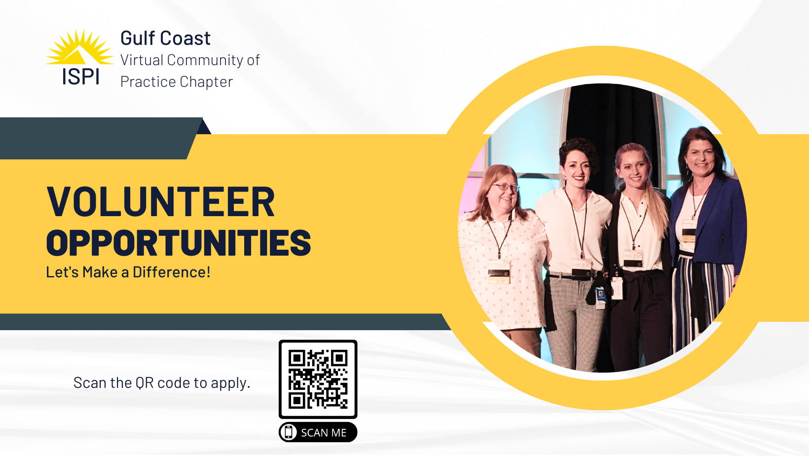 Are you ready to make a lasting impact and be at the forefront of change? The Gulf Coast ISPI Virtual Chapter seeks dedicated volunteers to participate in our transformative journey. Whether you're an experienced professional or just starting your career in performance improvement, your unique perspective and skills are invaluable in rebuilding our chapter. Let's create a thriving community where innovation, collaboration, and growth flourish!